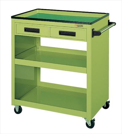 <<商品スペック>> ●外寸:W755×D505×H880mm ●カラー:サカエグリーン ●均等耐荷重:200kg ●質量:37kg ●キャスター:75φゴム車