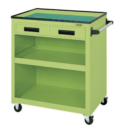 <<商品スペック>> ●外寸:W755×D505×H880mm ●カラー:サカエグリーン ●均等耐荷重:200kg ●質量:40kg ●キャスター:75φゴム車