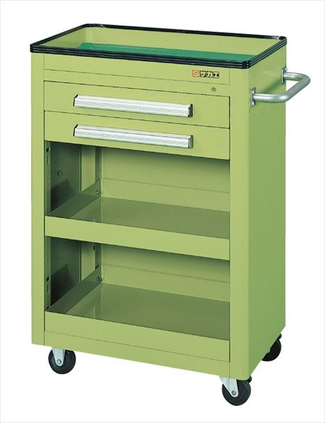 <<商品スペック>> ●外寸:W600×D400×H880mm ●カラー:サカエグリーン ●均等耐荷重:200kg ●質量:39kg ●キャスター:75φゴム車