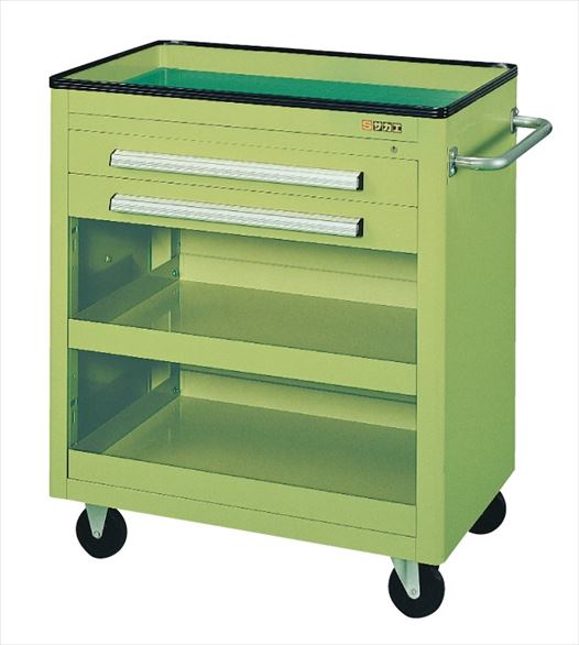 <<商品スペック>> ●外寸:W750×D500×H880mm ●カラー:サカエグリーン ●均等耐荷重:250kg ●質量:49kg ●キャスター:100φゴム車