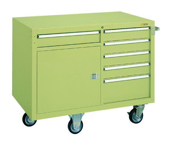 <<商品スペック>> ●外寸:W1100×D650×H868mm ●カラー:サカエグリーン ●質量:109kg ●キャスター:130φゴム車