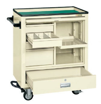 ●セット内容・付属品:フットブレーキ付・マット付●引出し内寸:浅引出し=W259×D319×H68mm(各段仕切2枚付)、深引出し=W259×D319×H152mm(各段仕切2枚付)、下段引出し=W589×D360×H116mm(仕切不可)