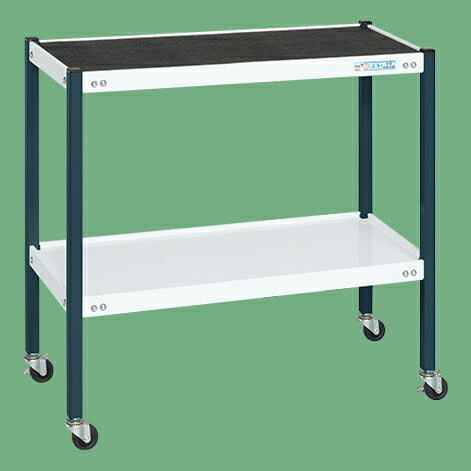 <<商品スペック>> ●外寸:W750×D500×H740mm ●カラー:棚板:ホワイト/支柱:ダークグレー ●均等耐荷重:75kg ●質量:10kg ●キャスター:50Φゴム車 ●2段タイプ