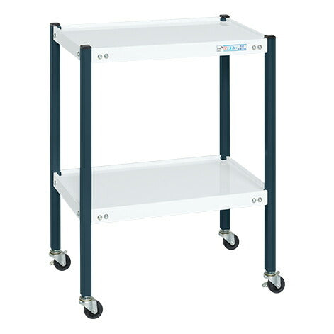 <<商品スペック>> ●外寸:W750×D500×H740mm ●カラー:棚板:ホワイト/支柱:ダークグレー ●均等耐荷重:75kg ●質量:10kg ●キャスター:50Φゴム車 ●2段タイプ