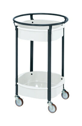 カドが無く人に優しいまるいワゴン!!タテ・ヨコの向きが無く、どこからでも握れて使いやすい!絞り加工の一体構造により油漏れのない棚板を採用。