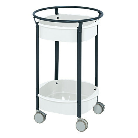 カドが無く人に優しいまるいワゴン!!タテ・ヨコの向きが無く、どこからでも握れて使いやすい!絞り加工の一体構造により油漏れのない棚板を採用。