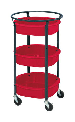 カドが無く人に優しいまるいワゴン!!タテ・ヨコの向きが無く、どこからでも握れて使いやすい!絞り加工の一体構造により油漏れのない棚板を採用。