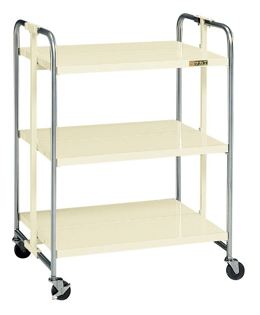 <<商品スペック>> ●外寸:W750×D500×H980mm ●均等耐荷重:150kg ●段数:3段 ●カラー:アイボリー ●キャスター:75φゴム車