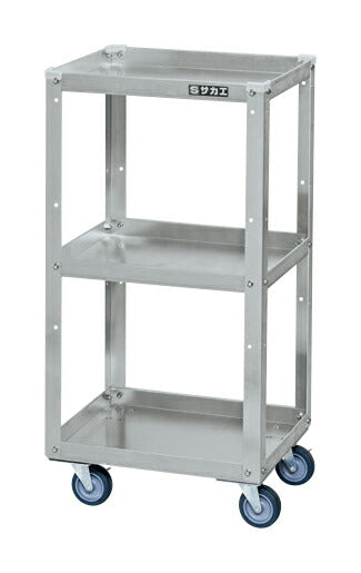 見た目にも美しいアルミ製のワゴンです。スチール製に比べ軽く、使い勝手の良いワゴンです。棚板は皿型・フラット型変更可能です。