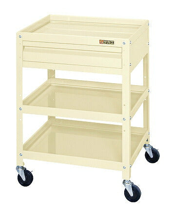 堅牢・安全・美観 三拍子揃った新しいワゴンです。 人にやさしい棚板形状です。