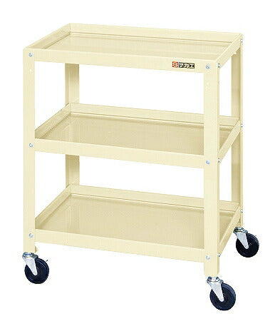堅牢・安全・美観 三拍子揃った新しいワゴンです。 人にやさしい棚板形状です。