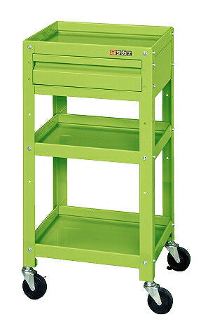 堅牢・安全・美観 三拍子揃った新しいワゴンです。 人にやさしい棚板形状です。