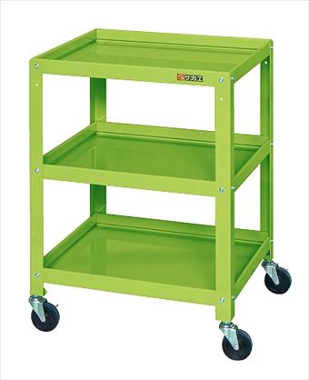 堅牢・安全・美観 三拍子揃った新しいワゴンです。 人にやさしい棚板形状です。