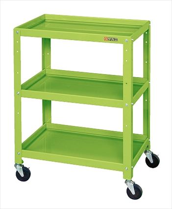 堅牢・安全・美観 三拍子揃った新しいワゴンです。 人にやさしい棚板形状です。