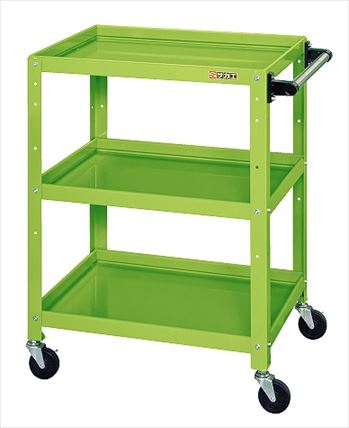 堅牢・安全・美観 三拍子揃った新しいワゴンです。 人にやさしい棚板形状です。