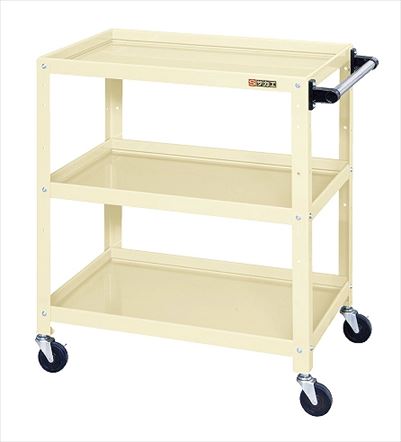堅牢・安全・美観 三拍子揃った新しいワゴンです。 人にやさしい棚板形状です。