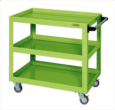 堅牢・安全・美観 三拍子揃った新しいワゴンです。 人にやさしい棚板形状です。