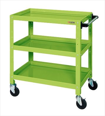 堅牢・安全・美観 三拍子揃った新しいワゴンです。 人にやさしい棚板形状です。