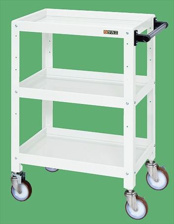 堅牢・安全・美観 三拍子揃った新しいワゴンです。 人にやさしい棚板形状です。