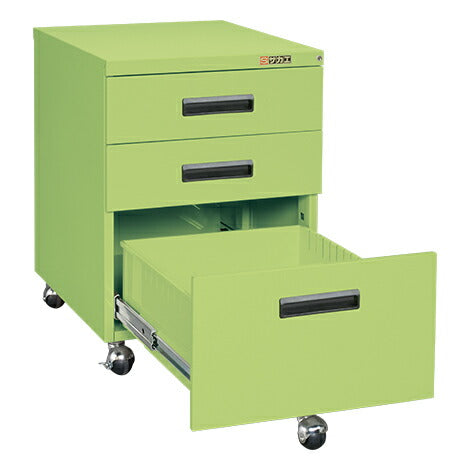 作業台脇の補助キャビネット。キャスター付で移動も簡単です。