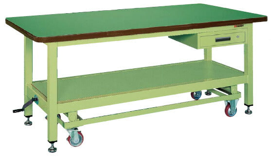 商品名: 超重量作業台KWCタイプ(ハンドル昇降移動・キャビネット付)