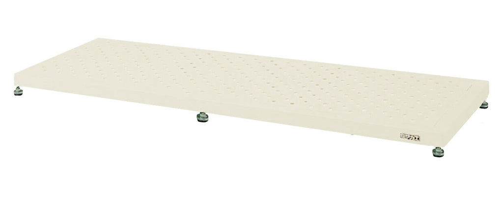 <<商品スペック>> ●外寸:W1800×D600×H90~110mm ●カラー:アイボリー ●均等耐荷重:150kg ●質量:25kg ●アジャスター:防振タイプ ネジ径M12×P1.75