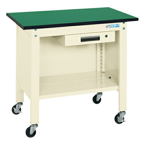 改正RoHS指令(RoHS2)における制限物質対応サカエリューム天板付作業台。キャスター付で簡単に移動ができます。