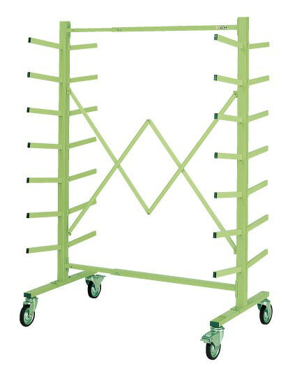 <<商品スペック>> ●外寸:W900~1500×D700×H1755mm ●カラー:サカエグリーン ●キャスター:φ100ゴム車