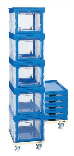 <<商品概要>> 商品名: オリタタミコンテナ台車セット(ナイロンキャスター仕様) 型番: SO-50DS サカエコード: 210781 JANコード: 4549347652375