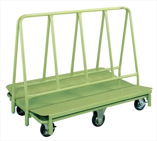 <<商品スペック>> ●外寸:W1270×D870×H988mm ●均等積載荷重:500kg ●カラー:サカエグリーン ●質量:45kg ●キャスター:125φゴム車(自在ストッパー付4個、固定2個)