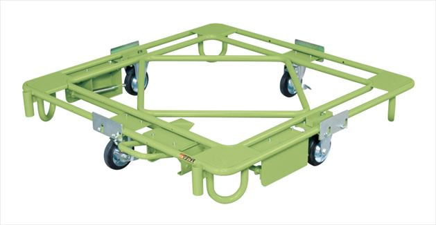 <<商品スペック>> ●外寸:W1110×D1110mm ●均等積載荷重:450kg ●カラー:サカエグリーン ●質量:24kg ●キャスター:125φゴム車