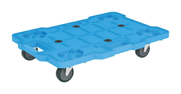 <<商品スペック>> ●外寸:W620×D430×H118mm ●荷台寸法:600×410mm ●本体色:ブルー ●均等耐荷重:100kg ●質量:2.2kg ●車輪タイプ:自在2・固定2