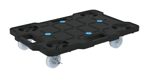 <<商品スペック>> ●外寸:W620×D430×H118mm ●荷台寸法:600×410mm ●本体色:ブラック ●均等耐荷重:100kg ●質量:2.2kg ●車輪タイプ:4輪自在