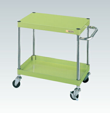 ●ボルトレスで組立簡単。棚板を逆さにするだけで、皿型・フラット型と組み替えることができます。安価で耐久性に優れるゴム車を採用。