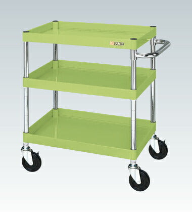 ●ボルトレスで組立簡単。棚板を逆さにするだけで、皿型・フラット型と組み替えることができます。安価で耐久性に優れるゴム車を採用。