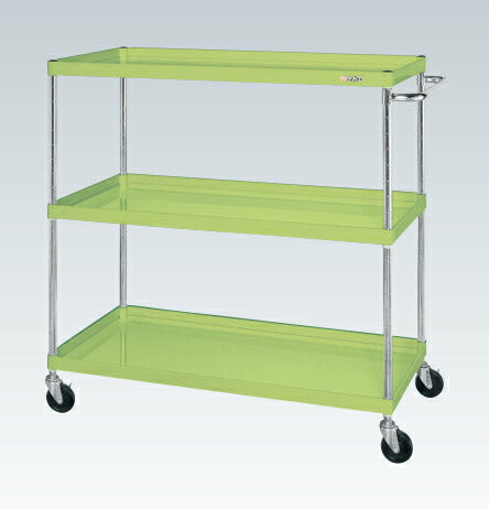 ●ボルトレスで組立簡単。棚板を逆さにするだけで、皿型・フラット型と組み替えることができます。安価で耐久性に優れるゴム車を採用。