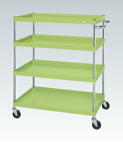 ●ボルトレスで組立簡単。棚板を逆さにするだけで、皿型・フラット型と組み替えることができます。安価で耐久性に優れるゴム車を採用。