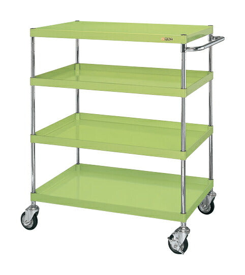 ボルトレスで組立簡単。棚板を逆さにするだけで、皿型・フラット型と組み替えることができます。安価で耐久性に優れるゴム車を採用。大径キャスターで重荷重にも対応できます。