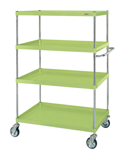 ボルトレスで組立簡単。棚板を逆さにするだけで、皿型・フラット型と組み替えることができます。安価で耐久性に優れるゴム車を採用。大径キャスターで重荷重にも対応できます。