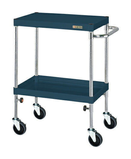 ●ボルトレスで組立簡単。棚板を逆さにするだけで、皿型・フラット型と組み替えることができます。静粛性・始動性に優れるサイレントエラストマー車を採用。作業用途に応じてワゴンの高さを調整できます。