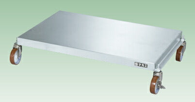 <<商品スペック>> ●外寸:W890×D550×H48mm ●質量:13kg ●材質:SUS304 ●キャスター:75φナイロンウレタン車 スチール金具