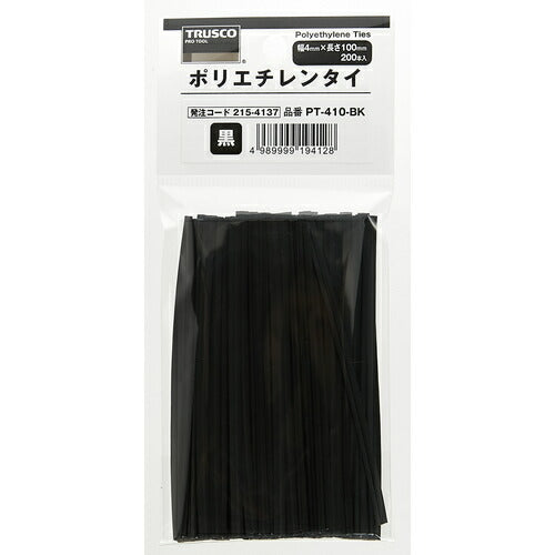 商品名:TRUSCO ポリエチレンタイ 幅4mm×長さ100mm 黒 (200本入) トラスコ中山(株) コードNo: PT-410-BK オレンジブック発注コード:215-4137 JANコード:4989999194128
