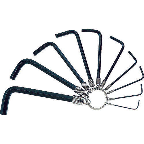 トラスコ 発注コード:226-6172 特徴 ●リング式なので、携帯に便利です。キーホルダ感覚であらゆる所にかけられます。 ●硬度はHRC52~56です。 用途 - 仕様 ●セット内容(インチ):1/16、5/64、3/32、1/8、5/32、3/16、7/32、1/4、5/16、3/8 ●セット内容(本):10 仕様2 - 材質/仕上げ ●クロムバナジウム鋼 ●表面処理:黒染め(1/4インチ以下)、カチオン電着塗装(5/16インチ以上) セット内容・付属品 - 注意事項 -