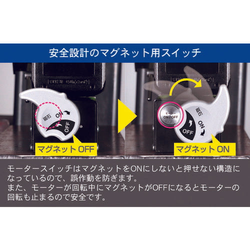 ●磁石をONにしないとモータースイッチを押せない構造で誤作動を防ぎます。