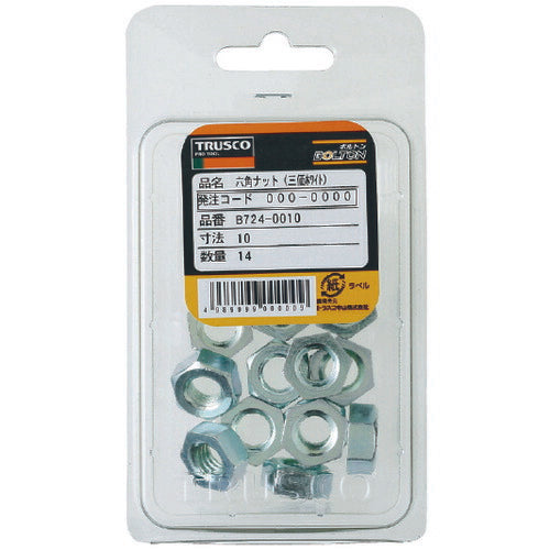 商品名:TRUSCO 六角ナット1種 三価白 M3×0.5 190個入 トラスコ中山(株) コードNo: B724-0003 オレンジブック発注コード:285-8029 JANコード:4989999288261