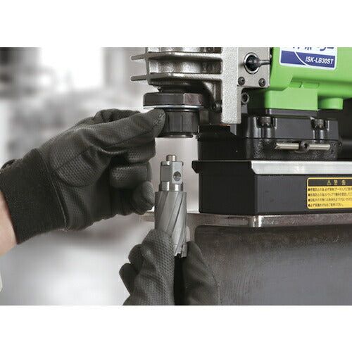 ●パワフルモーターを搭載し、コンパクトで超軽量だが、大口径・重切削の穴あけを実現しました(最大穴径50mm、最大板厚50mm)。
