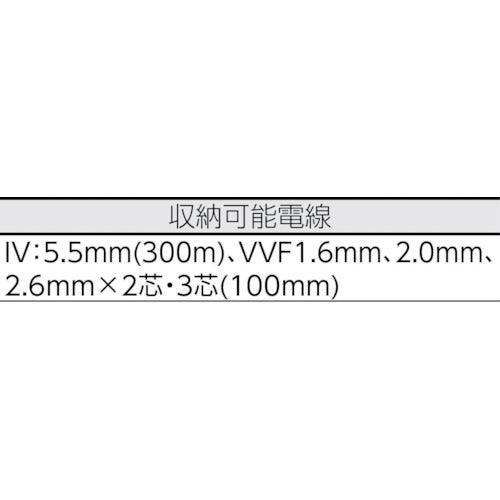 ●収納可能電線:IV:5.5[[MM2]](300m)、VVF:1.6mm、2.0mm、2.6mm×2芯・3芯(100m)