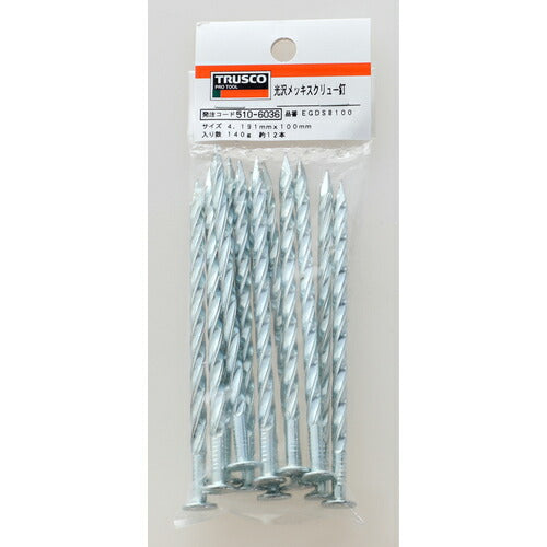 商品名:TRUSCO スクリュー釘 ユニクロメッキ 4.50X100 12本入 トラスコ中山(株) コードNo: EGDS8100 オレンジブック発注コード:510-6036 JANコード:4989999079173