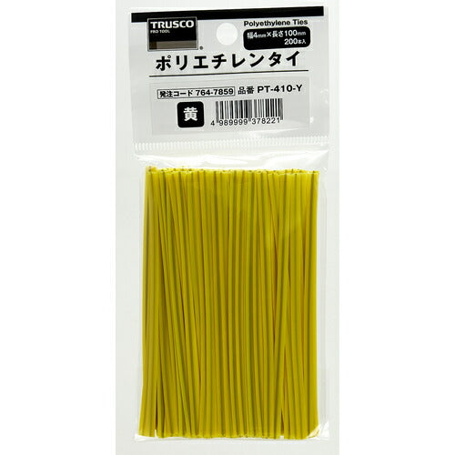 商品名:TRUSCO ポリエチレンタイ 幅4mm×長さ100mm 黄 (200本入) トラスコ中山(株) コードNo: PT-410-Y オレンジブック発注コード:764-7859 JANコード:4989999378221
